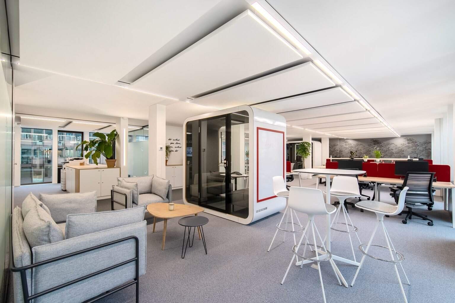 La flexibilité est la clé pour les collaborateurs nomades. Ainsi, nous vous conseillons vivement d’opter pour des bureaux modulables pour plus de praticité, des tables réglables en hauteur et des chaises ergonomiques qui s’adaptent aux préférences individuelles. Intégrez des espaces polyvalents qui peuvent être facilement configurés en fonction des besoins, tels que des zones de collaboration informelles, des espaces de réunion réservables à la demande et des zones de concentration silencieuses. Vous pouvez notamment placer quelques phonebox dans vos espaces dans lesquelles vos collaborateurs pourront facilement s’isoler le temps d’une courte réunion.