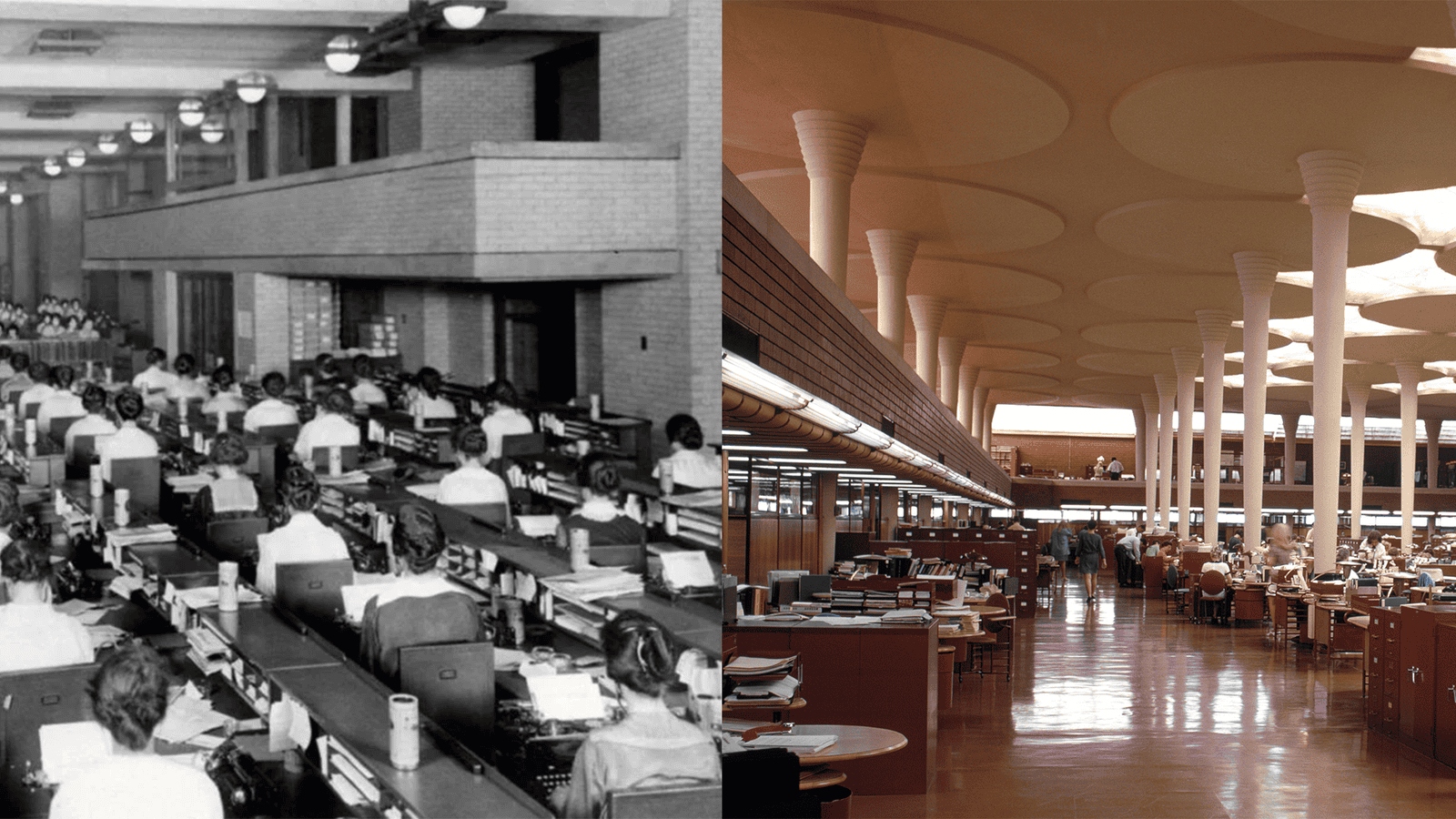C’est le début d’une nouvelle façon de travailler. Il est nécessaire de trouver de la place pour accueillir un nombre grandissant de travailleur dans les bureaux. C’est ainsi que les premiers building naissent de façon à économiser de l’espace au sol et à élever les bureaux. Les étages sont hiérarchiser, les bureaux s’ouvrent et les entreprises commencent à se soucier de leur image vis à vis des salariés. C’est alors que les entreprises commencent à personnaliser leurs espaces pour attirer et afficher leur différence.