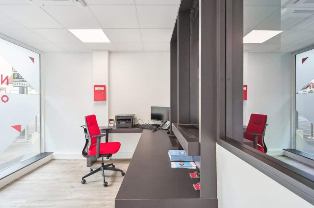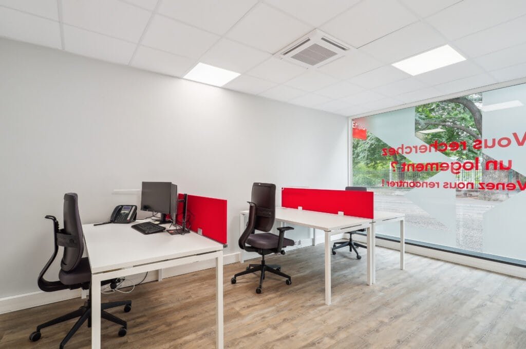 INSIDE a orchestré une transformation complète, de l’analyse à la réalisation, en pilotant les études, la conception et le chantier. Nous avons répondu au besoin d’un cadre de travail fonctionnel et chaleureux en jouant sur les codes visuels d’Erilia (duo blanc rouge) et en priorisant la lumière par un design épuré. Les cloisons vitrées, le mobilier pensé sur mesure et les zones mixées (open space, bureaux individuels, accueil) assurent une fluidité totale et une atmosphère propice aux échanges.