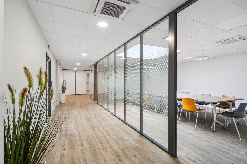 Erilia, acteur engagé du logement social, souhaitait repenser son plateau de bureaux d’environ 290 m² à Annemasse pour moderniser ses espaces et renforcer son identité visuelle. Le besoin était de créer des zones de travail harmonieuses et lumineuses, conformes à la charte graphique de l’entreprise, tout en optimisant la circulation, l’accueil des visiteurs et la gestion de la lumière naturelle dans un état initial peu favorable.