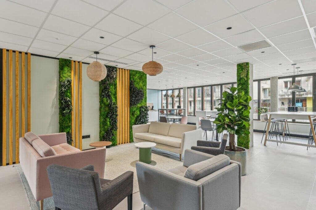 Du végétal et un mobilier confortable, accueillant.