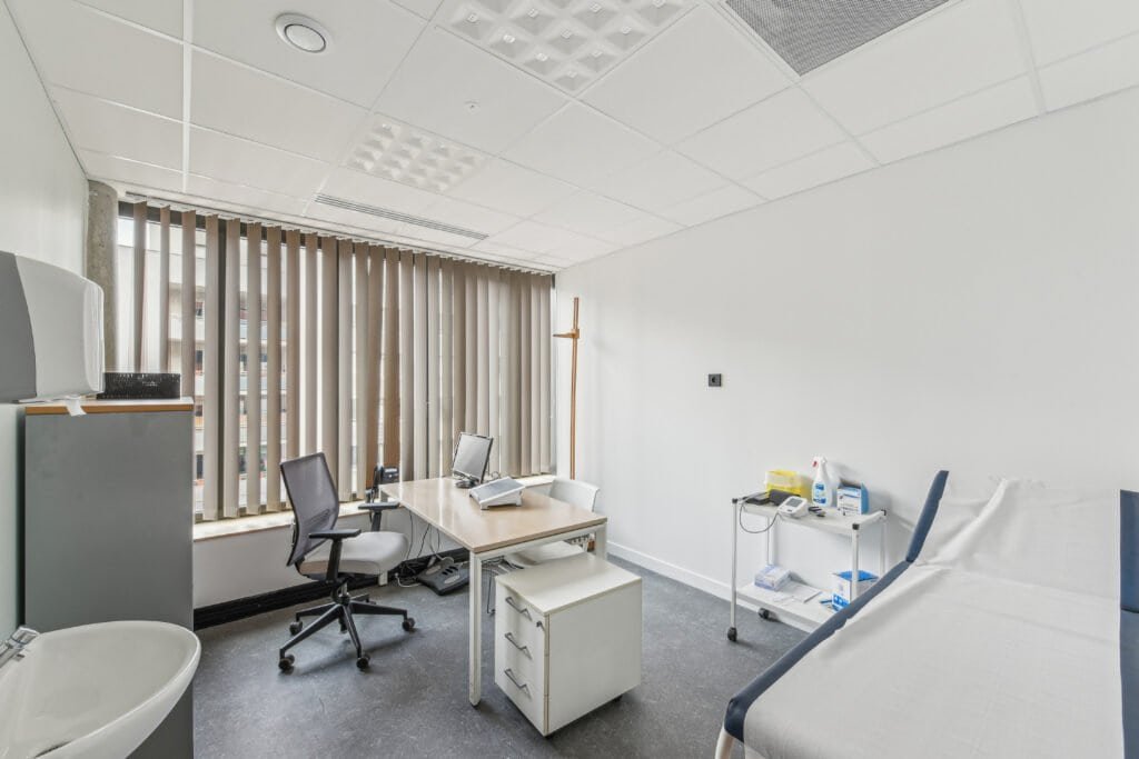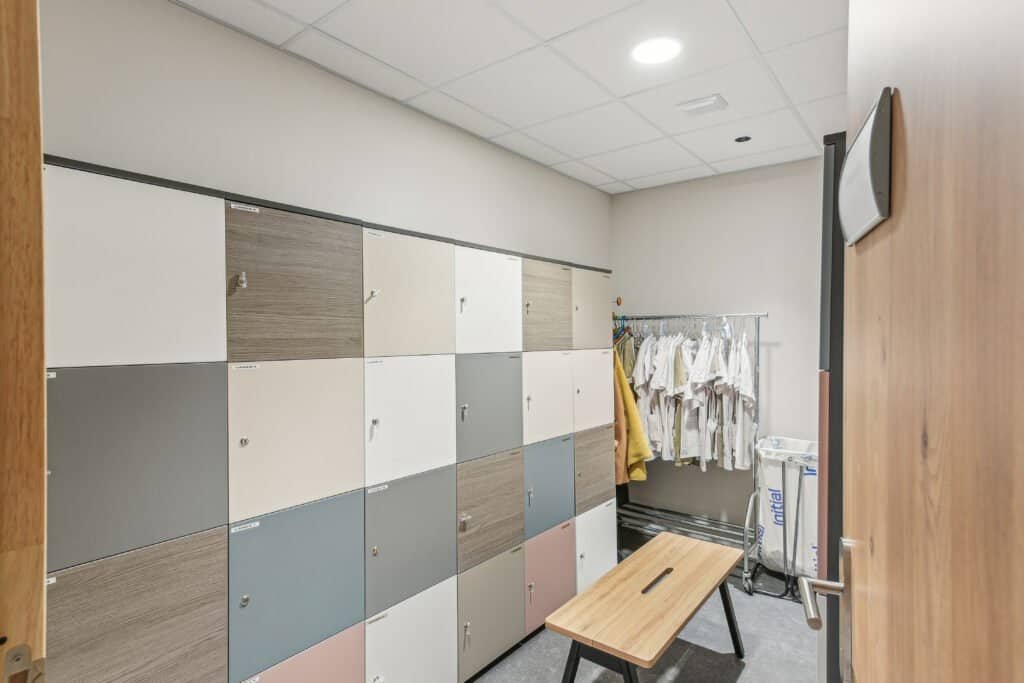 L’aménagement de 1 235 m² répartis sur deux niveaux a permis de structurer les usages : accueil du public et cabinets médicaux au R+2, espaces administratifs et de convivialité au R+3. En collaboration étroite avec le promoteur Groupe ELEGIA, certaines adaptations techniques (courant fort, chauffage/climatisation) ont pu être anticipées dès la construction du bâtiment, optimisant ainsi les coûts du projet.