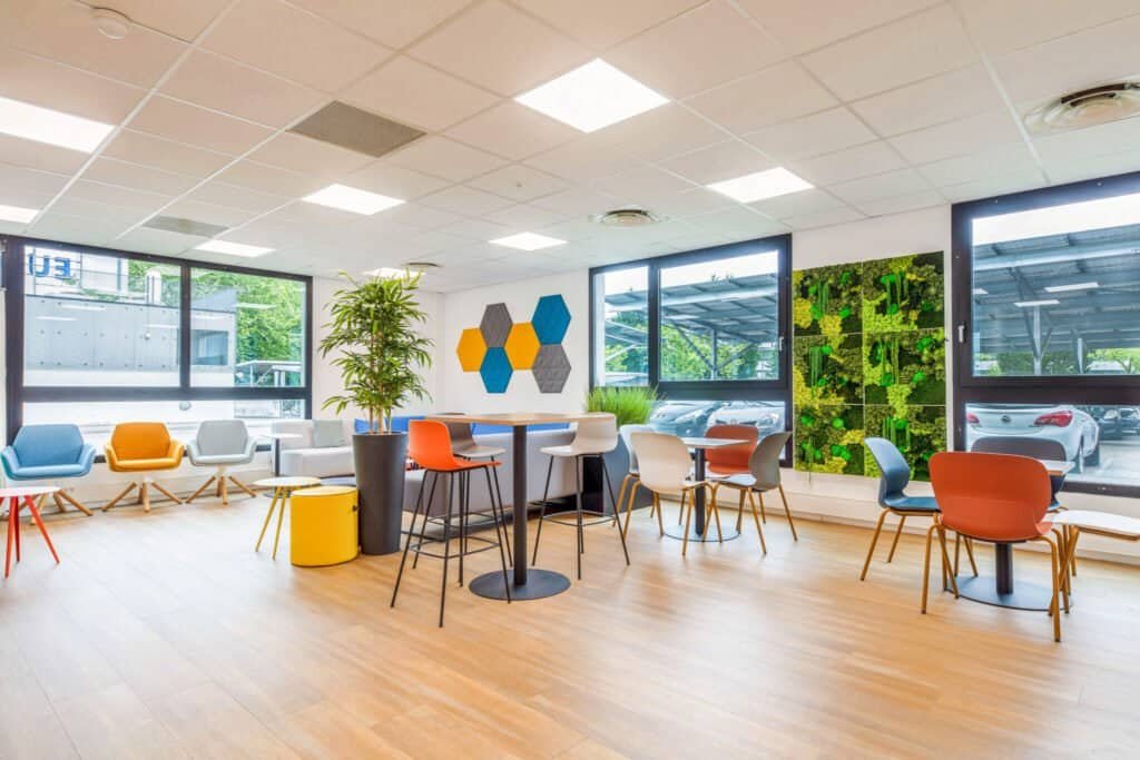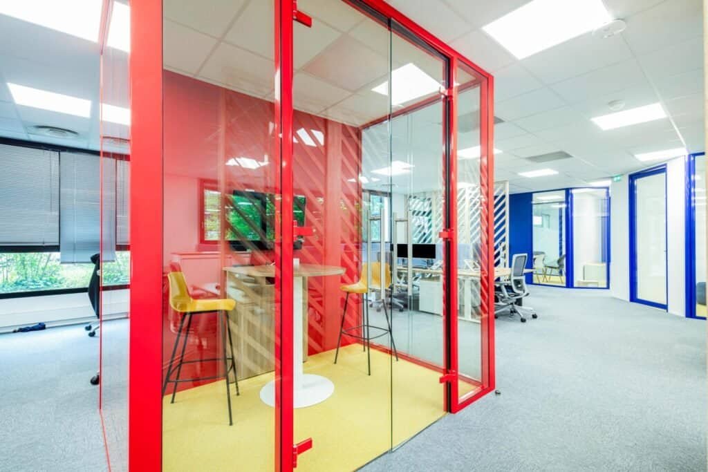 Concevoir un aménagement capable d’accompagner la croissance future, tout en intégrant des espaces techniques, collaboratifs et conviviaux. Le projet devait également s’aligner avec la charte graphique et l’esprit du groupe, en s’inspirant du siège à Malakoff.