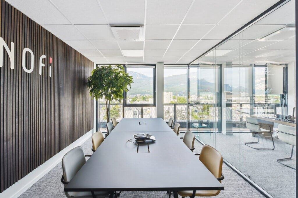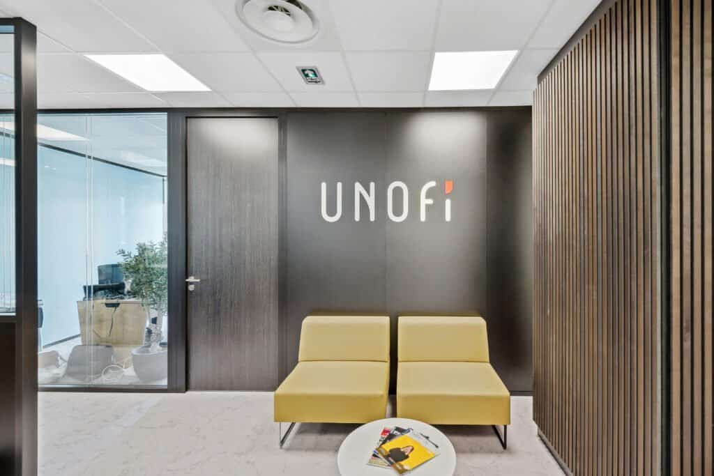 Dans le cadre de son développement, UNOFI — spécialiste de la gestion de patrimoine pour les clients des études notariales — a souhaité aménager de nouveaux locaux au sein du bâtiment Y.SPOT à Grenoble. L’enjeu : offrir à ses collaborateurs un environnement de travail moderne, fonctionnel et lumineux, capable d’allier collaboration et confidentialité. Le projet devait conjuguer des espaces partagés et isolés, tout en tirant parti de la grande transparence architecturale du bâtiment.